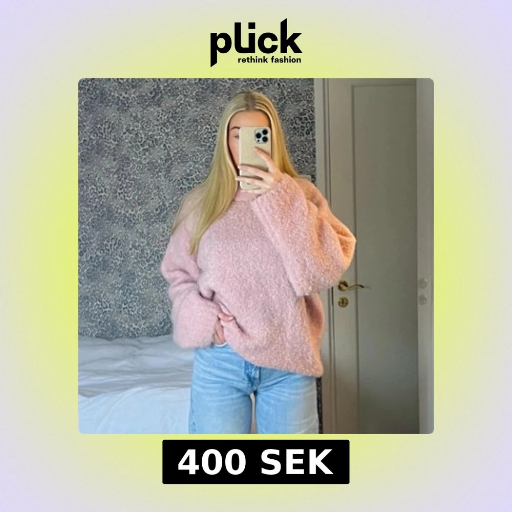 Supermysig ljusrosa stickad tröja med oversized passform och långa ärmar. Tröjan har en fluffig textur som gör den extra gosig och perfekt för kyliga dagar. Enkel rund halsringning och avslappnad stil som är lätt att matcha med jeans eller kjol.