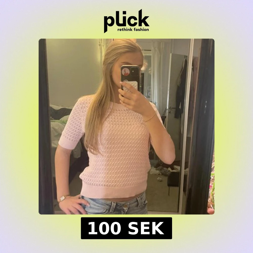 Säljer en ljusrosa stickad topp från 157 med korta ärmar och rund hals. Storlek M men passar som S. Toppen har ett snyggt hålmönster och ribbade muddar vid ärmslut och nederkant. Perfekt för vår och sommar när du vill ha en söt och luftig look.🐝🥰