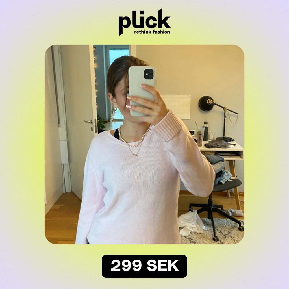 Säljer en superfin ljusrosa stickad tröja i bra skick. Den har långa ärmar och en bekväm passform, perfekt för både vår och höst. Tröjan är mjuk och skön, idealisk för mysiga dagar. Passar perfekt till jeans eller kjol!