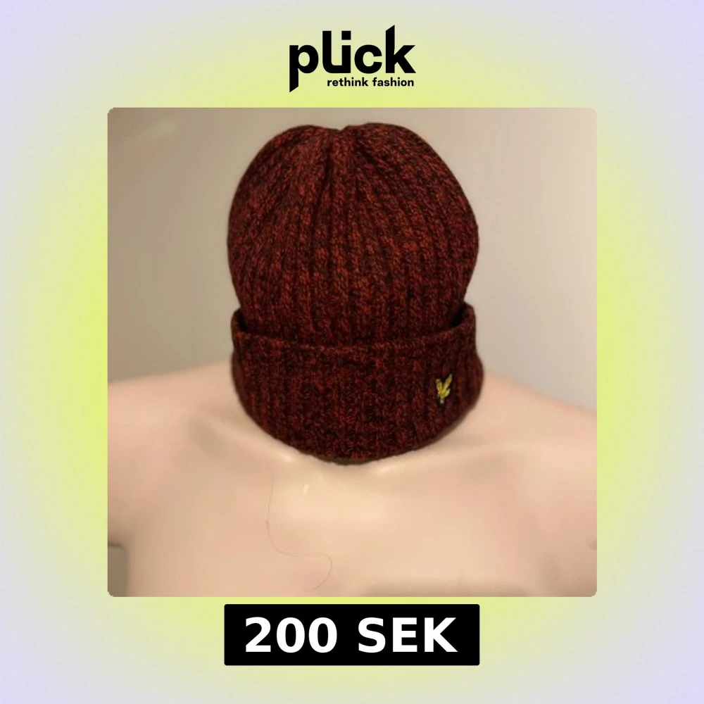 Snygg vinröd stickad mössa från Lyle & Scott med ribbad design. Perfekt för kyliga dagar med en stilren look. Den har en liten broderad logga framtill. Använd en gång
