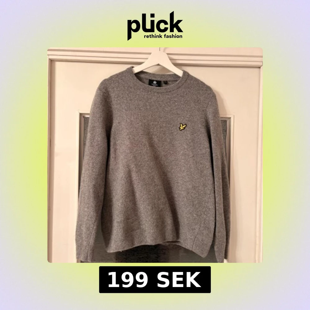 Snygg grå stickad tröja från Lyle & Scott med rund hals och deras klassiska gula fågel-logga broderad på bröstet. Tröjan har ribbade muddar vid ärmslut och nederkant, och är långärmad. Perfekt för dig som gillar stilren och enkel design.