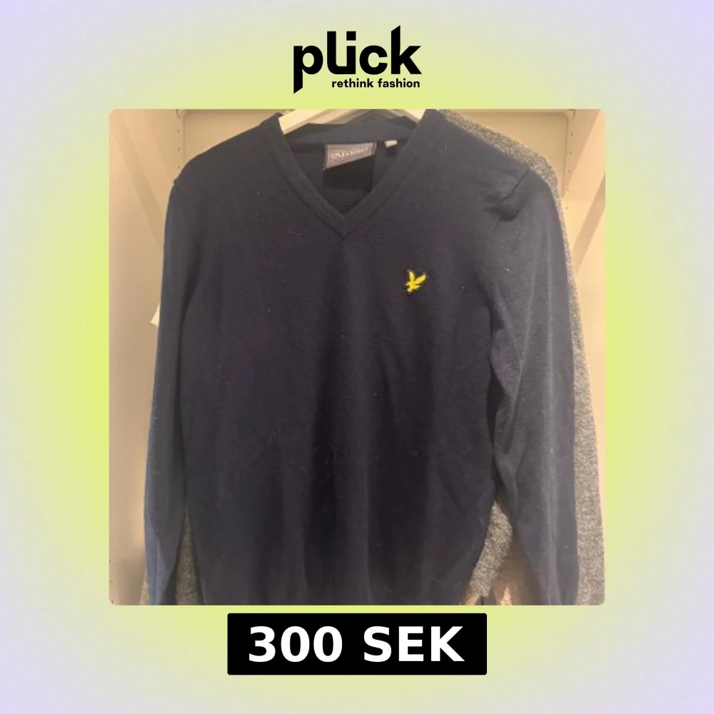 Snygg marinblå stickad tröja från Lyle & Scott med gul broderad logga på bröstet. V-ringad hals och långärmad modell som passar perfekt till jeans eller chinos. Mjuk och skön kvalitet som håller värmen under kyliga dagar.