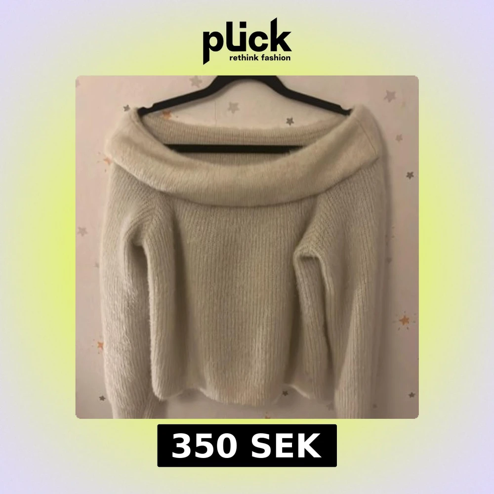 Säljer en mysig vit stickad offshoulder-tröja från DIVIDED. Perfekt för kyliga dagar med sin mjuka och bekväma passform. Tröjan har långa ärmar och en bred krage som ger en stilren look.