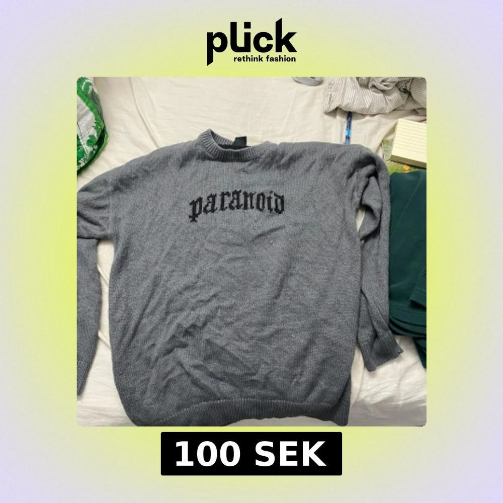 Grå stickad tröja från Black Squad i relaxed fit med svart texten 'paranoid' framtill. Tröjan har rund halsringning och långa ärmar, perfekt för dig som gillar en chill och stilren vibe.
