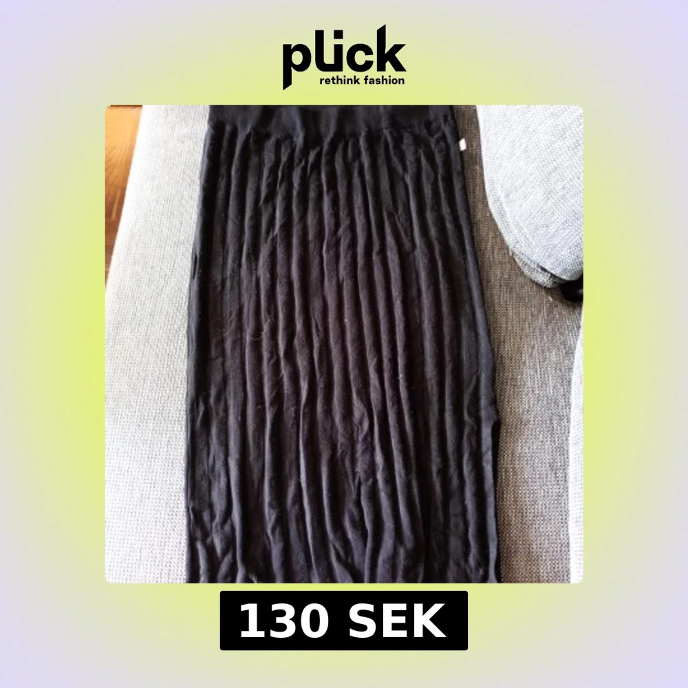 Säljer en svart långkjol med ribbad struktur och bred resår i midjan. Kjolen är enkel och stilren, perfekt att matcha med olika toppar. Materialet känns mjukt och följsamt.