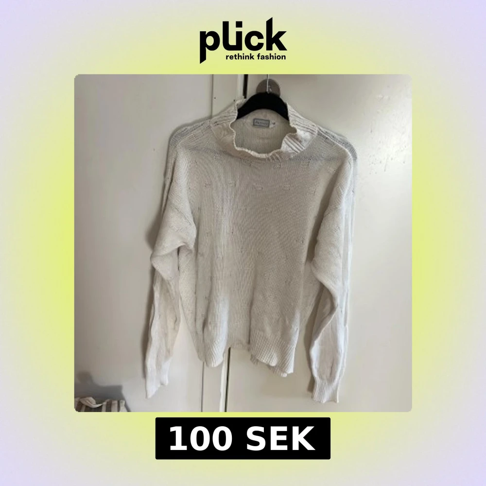 Vit stickad tröja från Daniels i storlek M. Tröjan har en halvpolo och diskret strukturmönster i stickningen. Långärmad modell med ribbade muddar vid ärmslut och nederkant. Perfekt för lager-på-lager och chill stil. Speciellt till hösten🥰