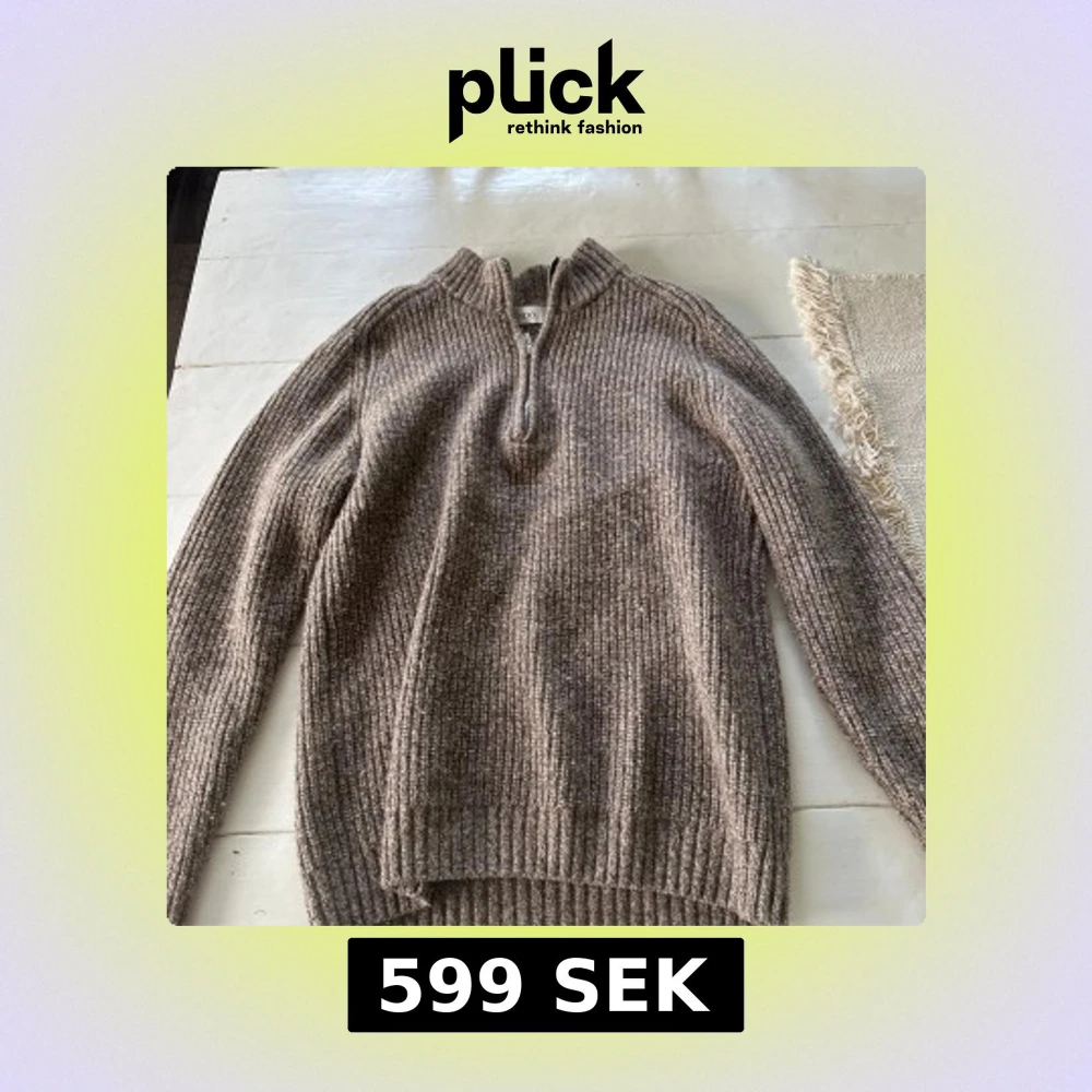 Säljer en beige stickad tröja från Sandö i storlek M. Tröjan har ribbad struktur, hög krage och en snygg half zip-dragkedja framtill. Perfekt för dig som gillar en chill och stilren look med lite extra edge på hösten och vintern.