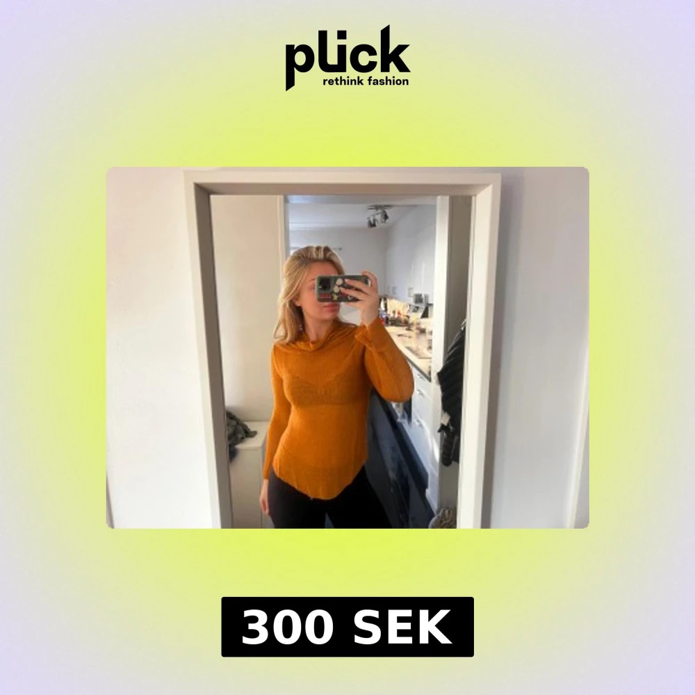 Säljer en snygg guldig ”stickad” lång ärm. Tröjan har en loose passform och är tillverkad i ett tunt, transparent stickat material som ger en cool och avslappnad vibe. Perfekt för dig som gillar färg och vill sticka ut lite extra.