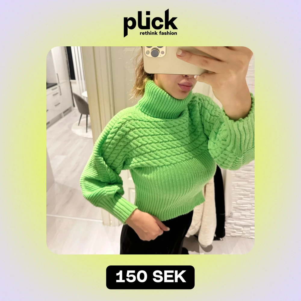 Säljer en superfin grön stickad tröja. Tröjan är croppad och har långa ärmar, perfekt för höst och vinter. Den är både varm och trendig, idealisk för att hålla stilen när det blir kallare. Passar perfekt till både jeans och kjol! S/M/L storlek