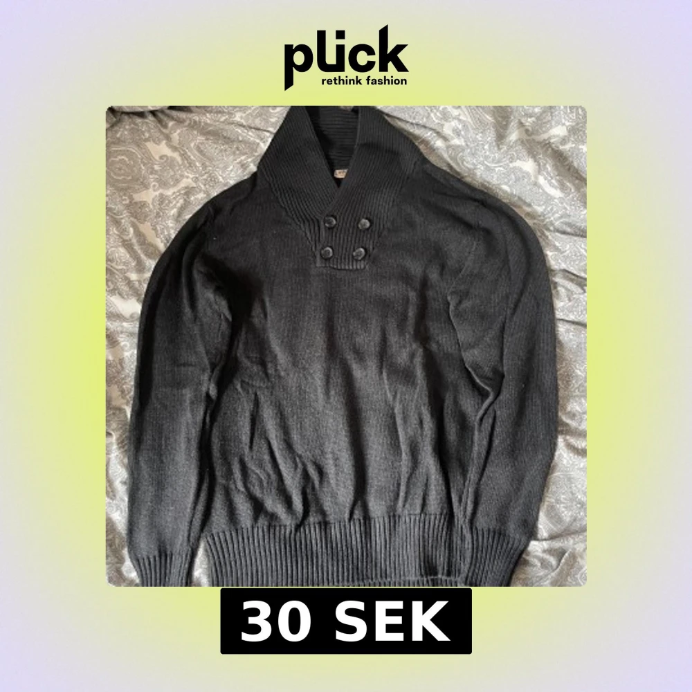 Svart stickad tröja från Livergy med bred ribbad krage och fyra dekorativa knappar framtill. Tröjan har lång ärm och bred ribbad mudd vid ärmslut och nederkant. Perfekt för dig som gillar en stilren och enkel look.