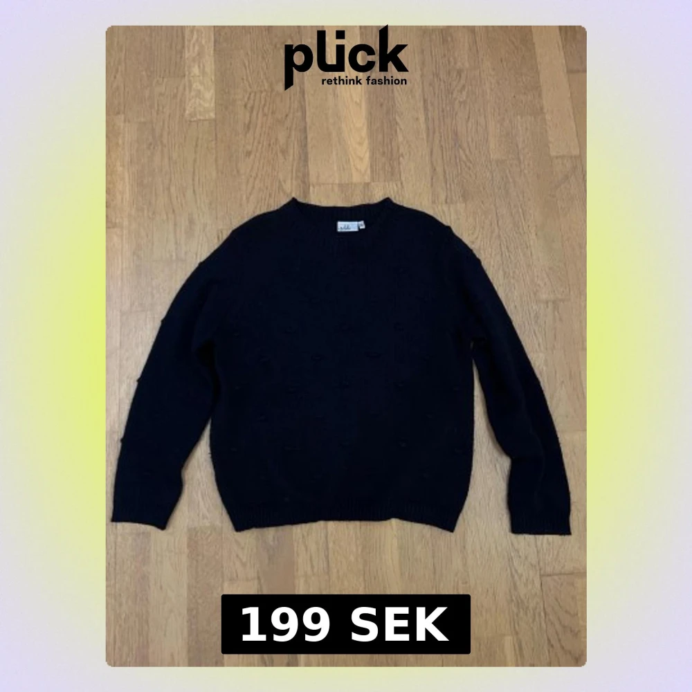 Svart stickad tröja från Isolde i storlek M. Tröjan har rund halsringning och långärmade ärmar. Den är dekorerad med små diskreta bollar i stickningen som ger en cool textur. Perfekt för dig som gillar enkel men snygg stil.