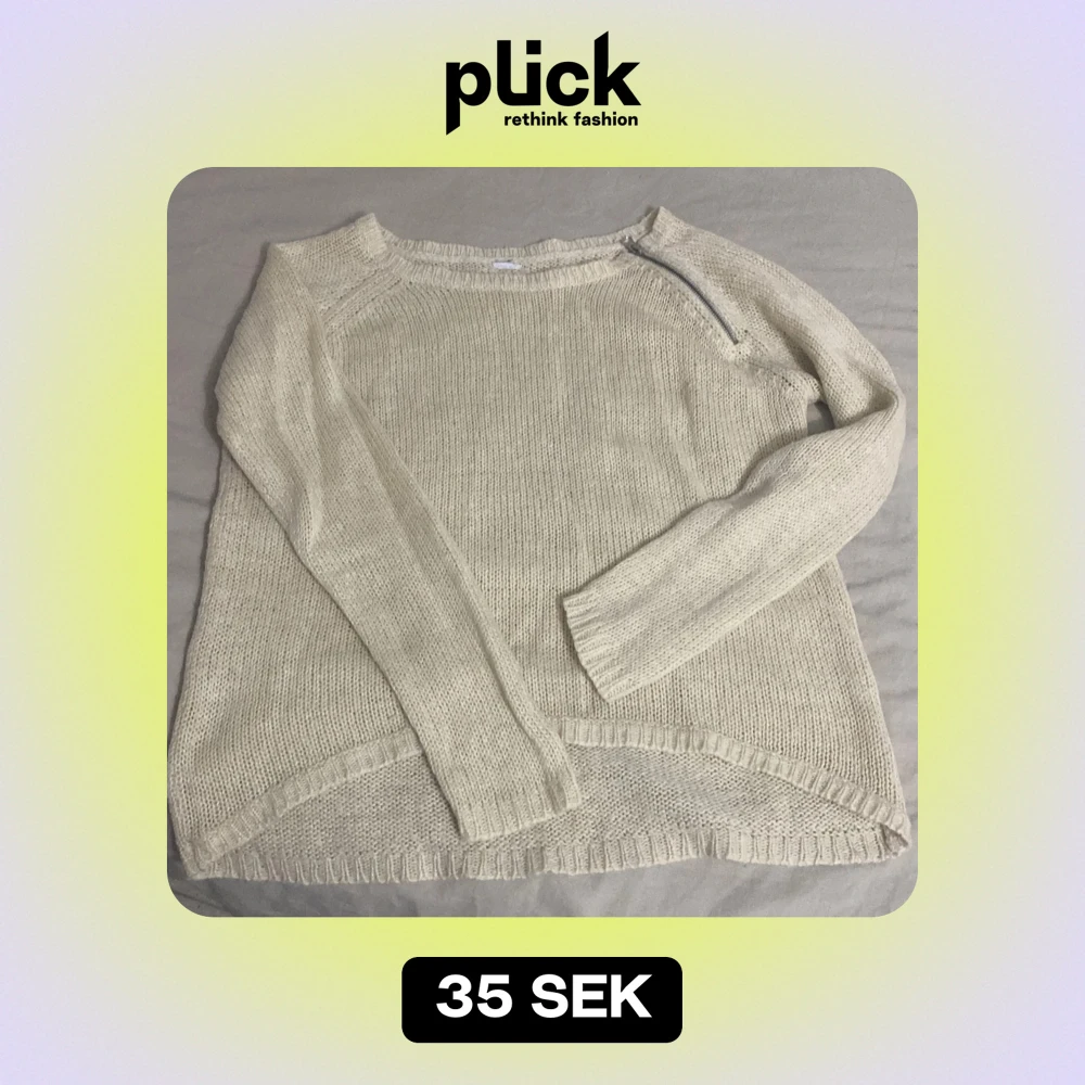 Säljer en mysig beige stickad tröja med en cool dragkedjedetalj vid halsen. Perfekt för kyliga dagar och passar både till vardags och lite finare tillfällen. Tröjan har långa ärmar och en avslappnad passform. Superfin att matcha med jeans eller kjol!