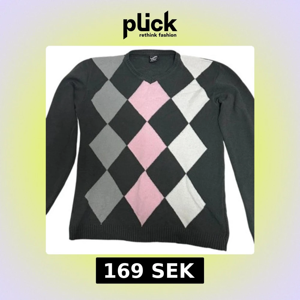 Argyle-mönstrad stickad tröja