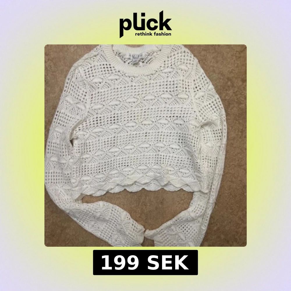Säljer en vit stickad croppad tröja med snyggt hålmönster. Tröjan har lång ärm och vida ärmar i slutet. Den är köpt från newyorker och är i storlek M, men funkar även för en s, använd endast en gång.