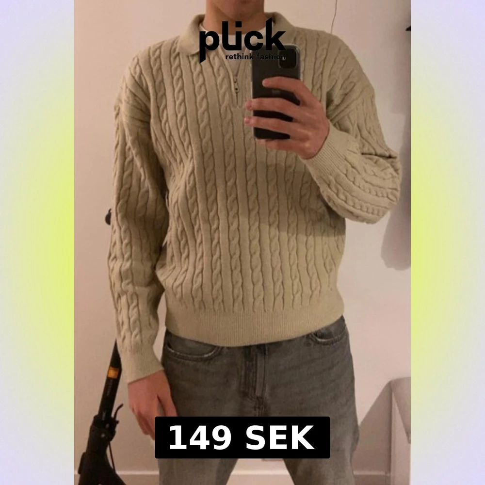Stickad tröja med dragkedja. Den är lite oversize vilket gör att den passar storlek M och L. Den är (M)