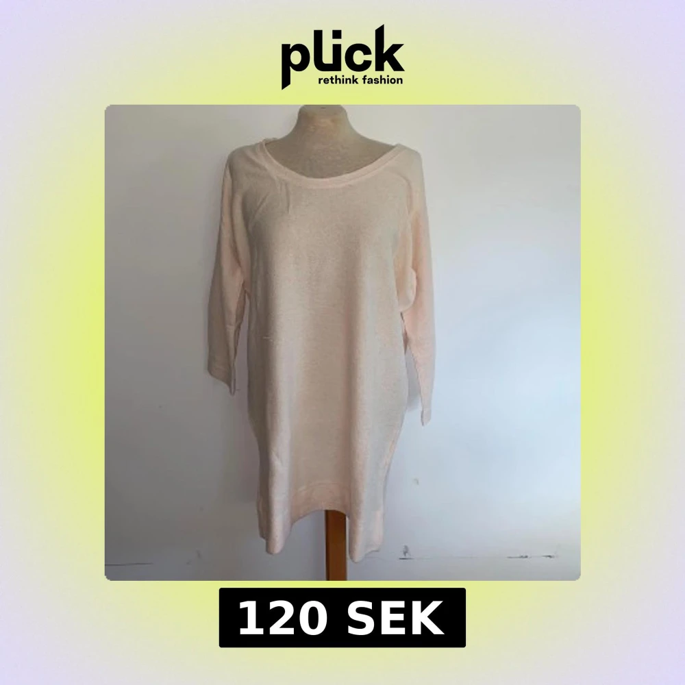 Säljer en ljusbeige stickad lång tröja/klänning från bzr med coola neonrosa prickar. Modellen är loose fit med trekvartsärm och rund halsringning. Står ingen storlek men gissar på M.