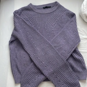 Säljer en mysig lila stickad tröja med rund hals och långa ärmar. Perfekt för kyliga dagar och ger en stilren look. Passar bra till jeans eller kjol. Hör av dig vid intresse! 💜