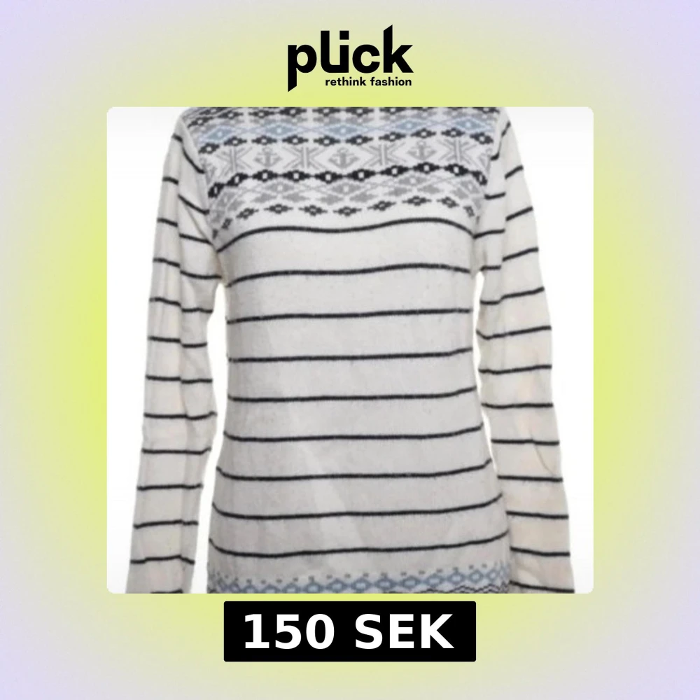 Vit långärmad tröja från Henri Lloyd med marinblå ränder och snyggt mönster upptill i blått och svart. Tröjan är stickad och gjord i en mjuk mix av viskos, nylon, ull och kashmir. Perfekt för dig som gillar klassisk och stilren loo