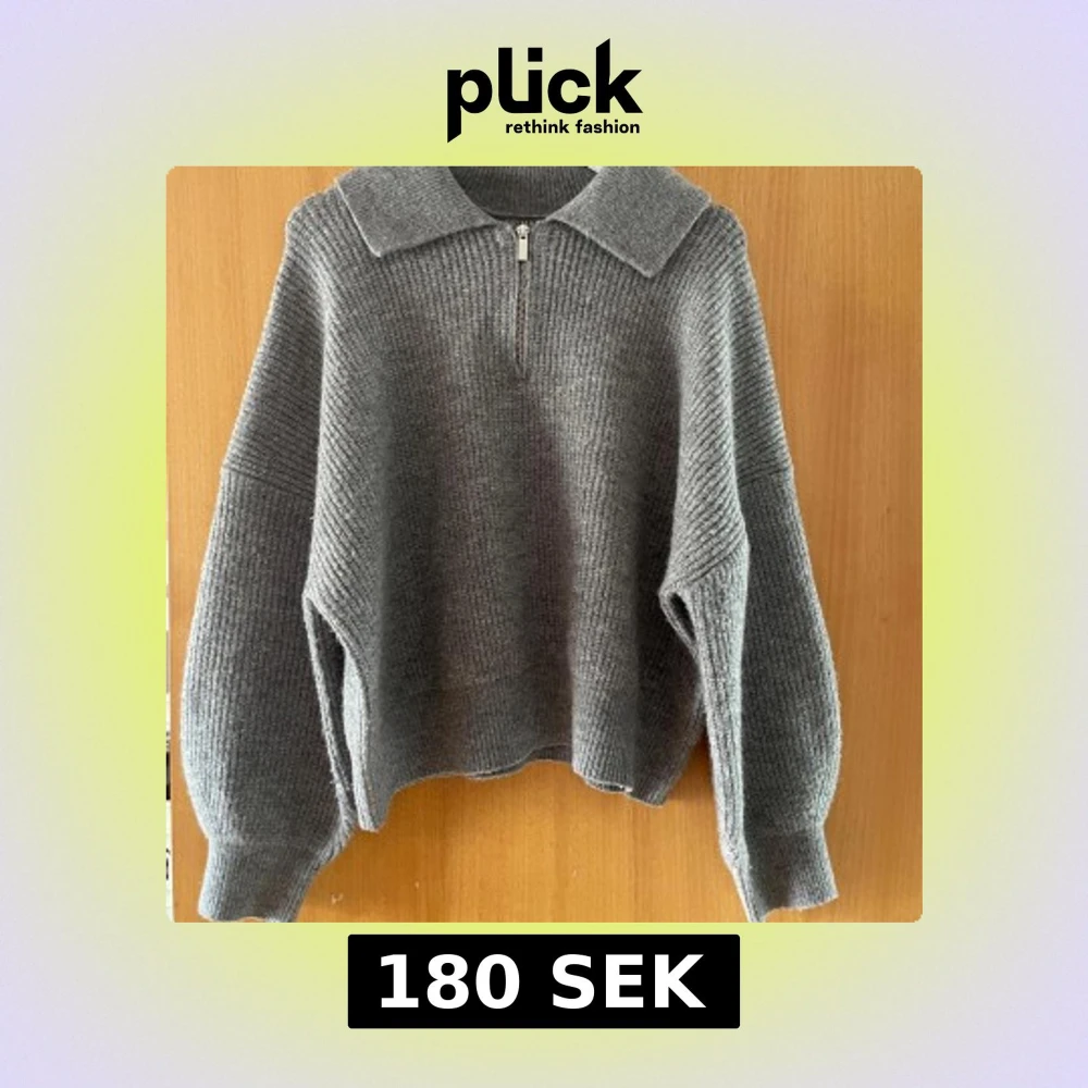 Säljer en mysig grå stickad tröja från Primark med dragkedja och krage. Tröjan har långa ärmar och en ribbad struktur som ger en stilren look. Perfekt för kyliga dagar!