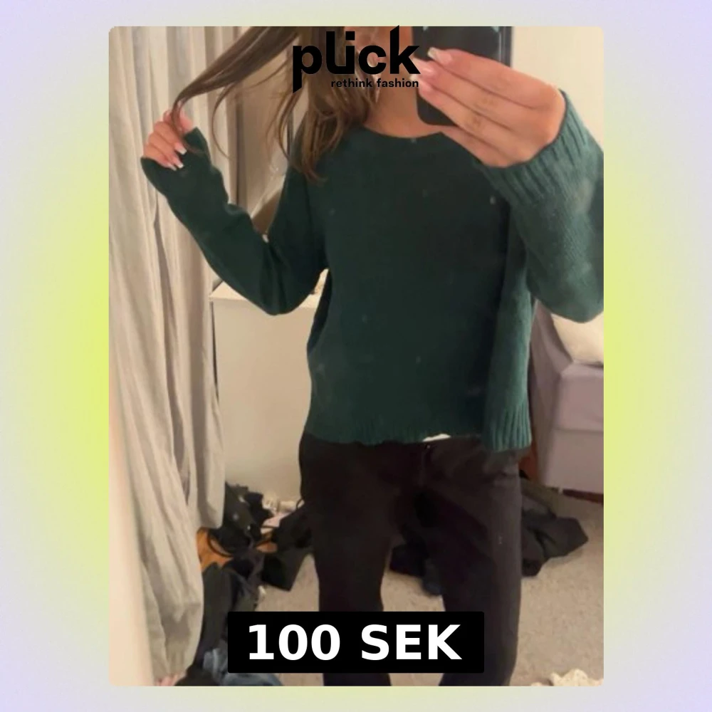 Mysig mörkgrön stickad tröja från Divided H&M i storlek M.