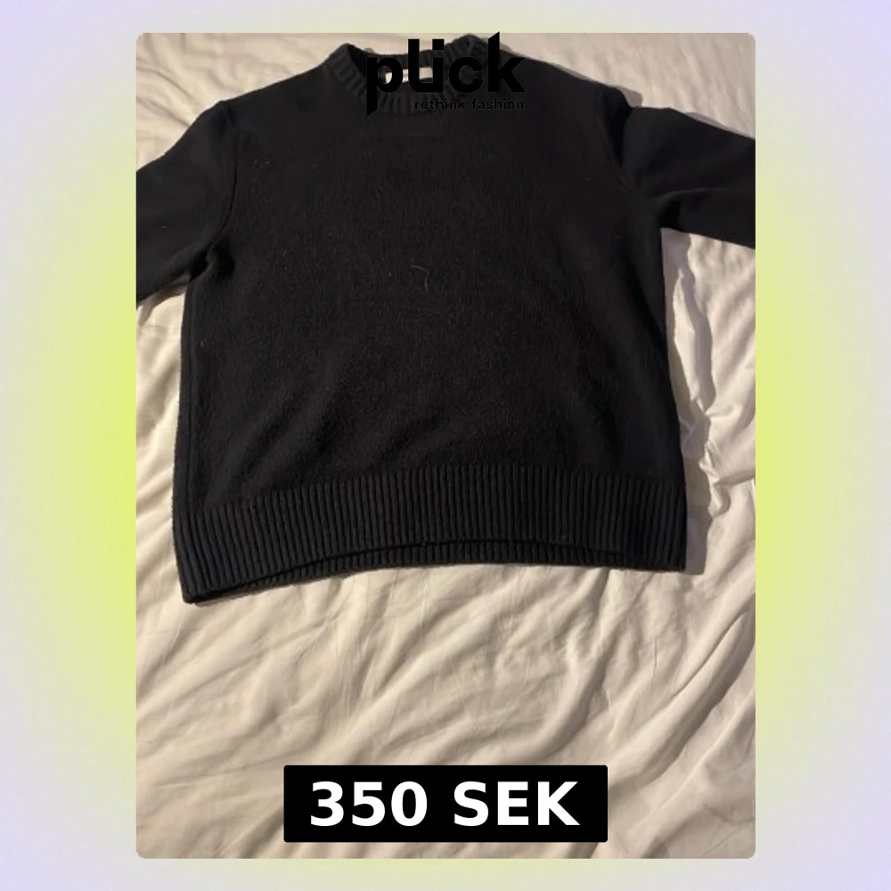 Säljer en svart stickad med rund hals och breda ribbade muddar vid nederkant och hals. Tröjan har lång ärm och är i mjukt material som passar perfekt för kyliga dagar. Enkel och stilren design som funkar till många outfits. Använd typ 2 ggr och säljer då den är för stor för mig. Pris går o diskutera.