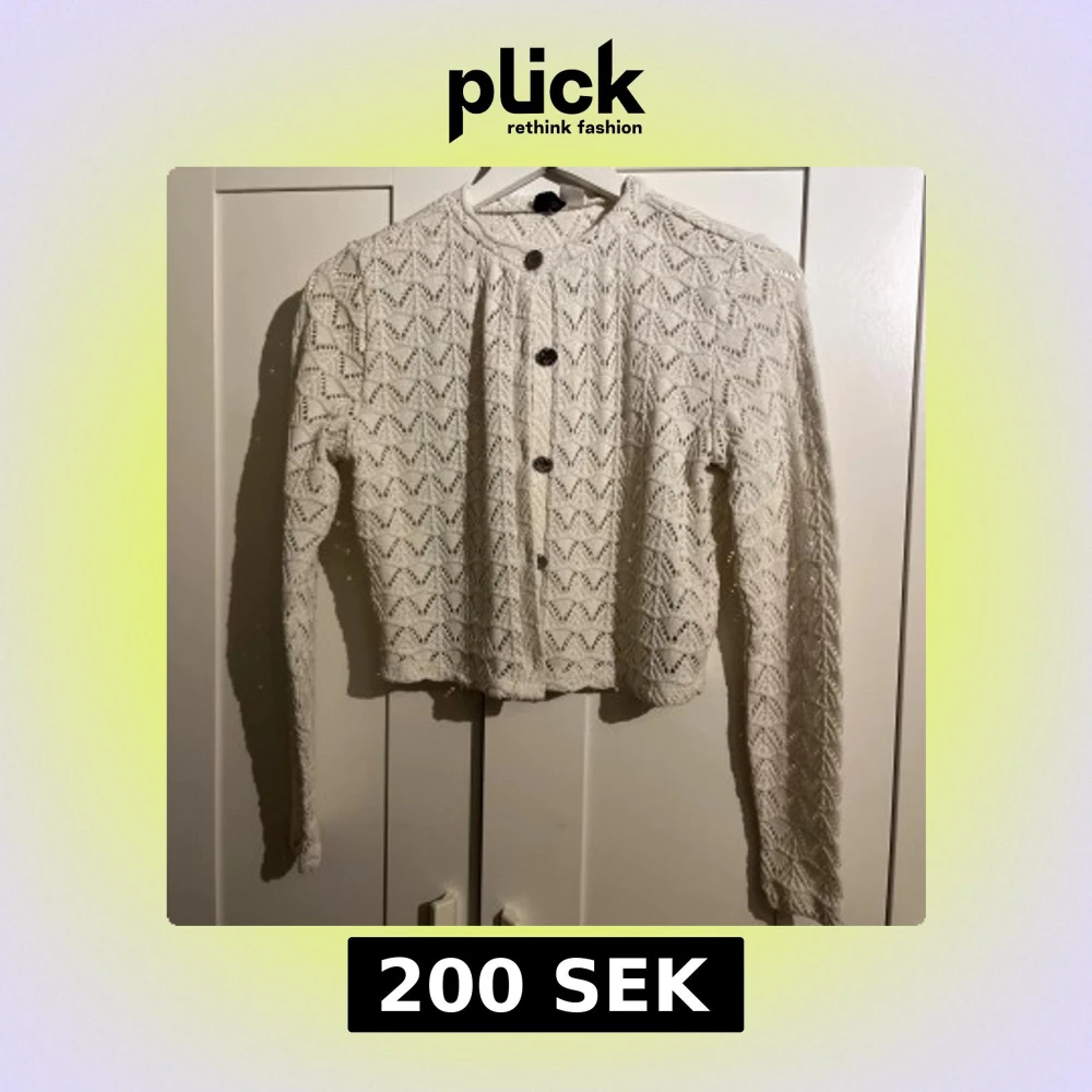 Supersöt vit stickad kofta med snyggt hålmönster och dekorativa knappar framtill. Koftan har lång ärm och rund halsringning, perfekt att slänga över en topp för en chill look. Mjuk och skön känsla, passar till både jeans och kjol.
