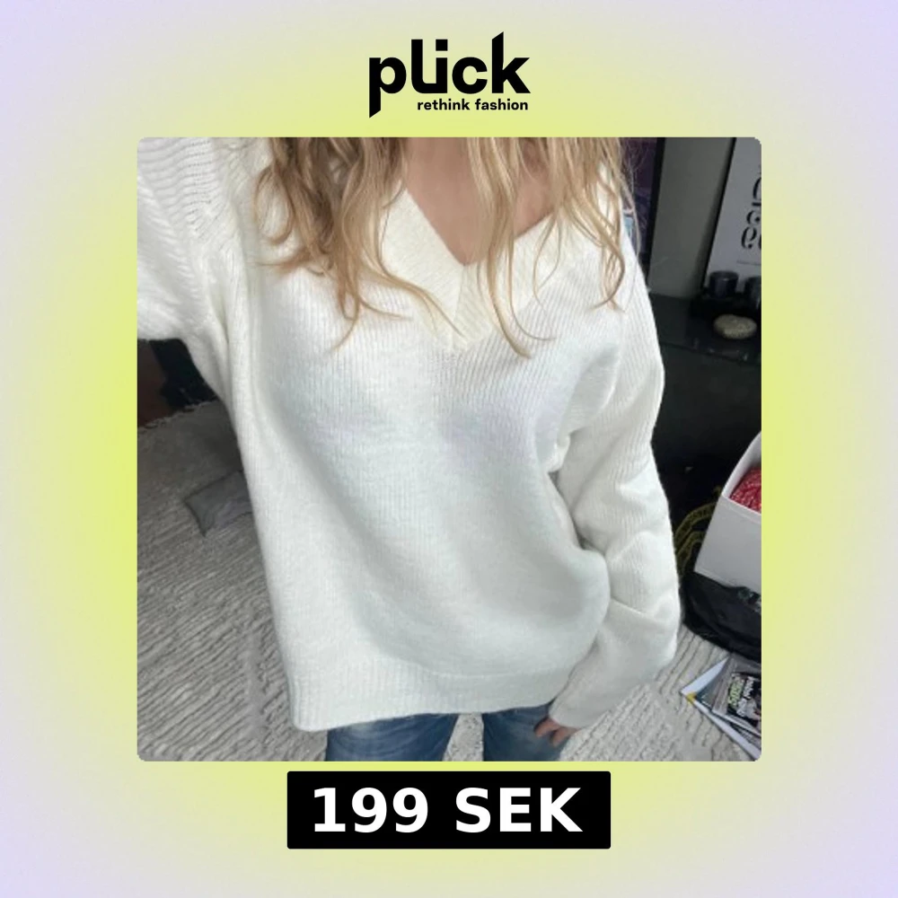 Säljer denna sjukt mysiga vita stickade tröjan med v-ringning och långa ärmar. Modellen är oversized och har breda ribbade muddar vid ärmslut och nederkant. Perfekt att slänga på sig nu under höstsäsongen, den är så enkel att styla också! Går att styla till skolan, julen men också när du bara vill ha en chilldag hemma, Enkel och stilren design som funkar till allt 🫶🏼 Inga tecken på användning!