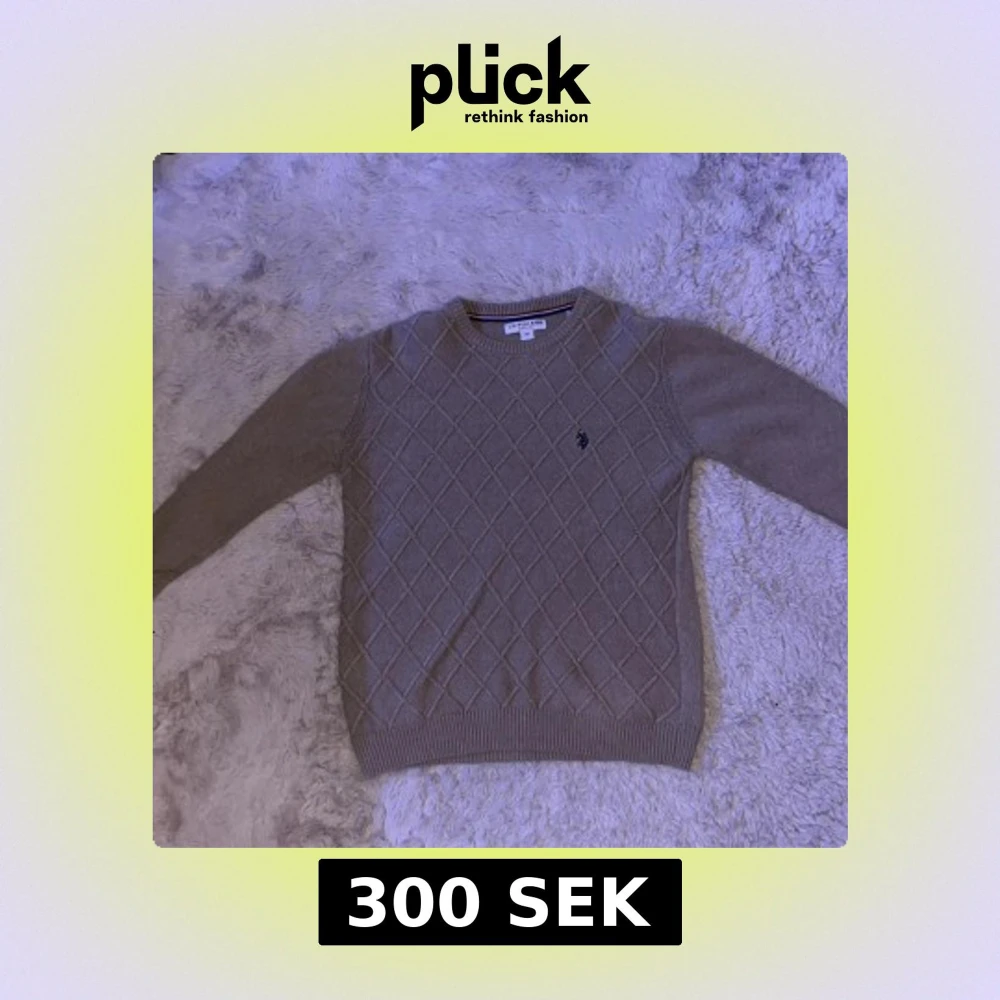 Säljer en stilren beige tröja från U.S. Polo Assn. med ett diskret rutmönster och broderad logga på bröstet. Tröjan har långa ärmar och ribbade kanter vid hals, ärmslut och nederkant. Perfekt för en klassisk look. Tröjan är i storlek M och är använd en gång och den är otroligt skön och varm.