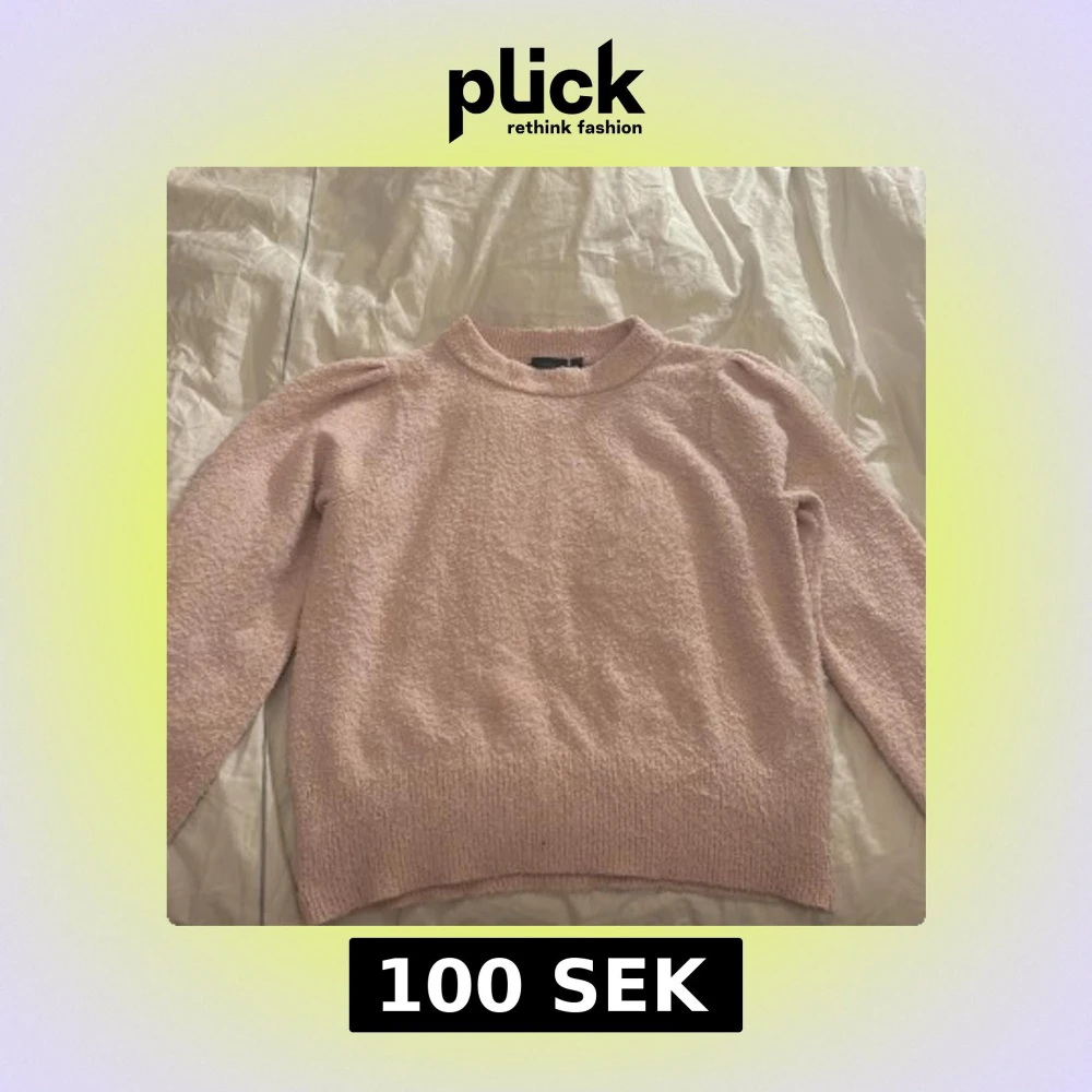 Ljusrosa stickad tröja med puffärm