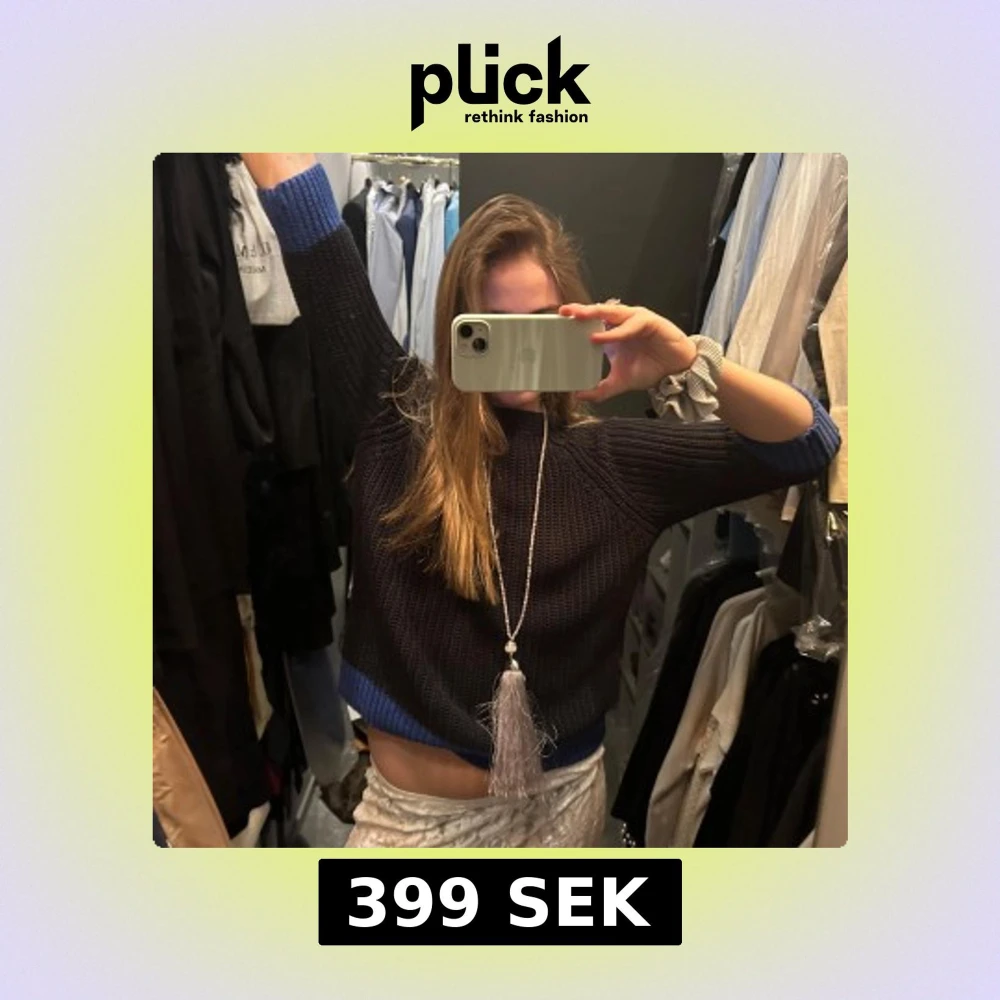 Säljer en svart MASSIMO DUTTI stickad tröja med blå muddar. Tröjan har en avslappnad passform och är perfekt för kyligare dagar. Den är enkel att matcha med olika outfits och ger en stilren look. Passar S-L!