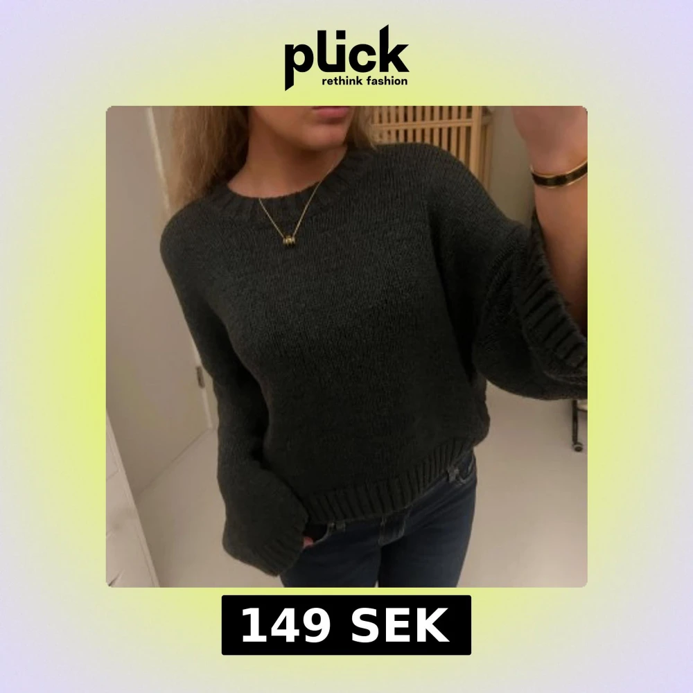 Mysig mörkgrå stickad tröja med breda, långa ärmar och ribbade muddar vid ärmslut och nederkant. Perfekt för lager-på-lager och chill dagar. Enkel och stilren design som funkar till jeans eller kjol. Tröjan går upp i ryggen!❤️