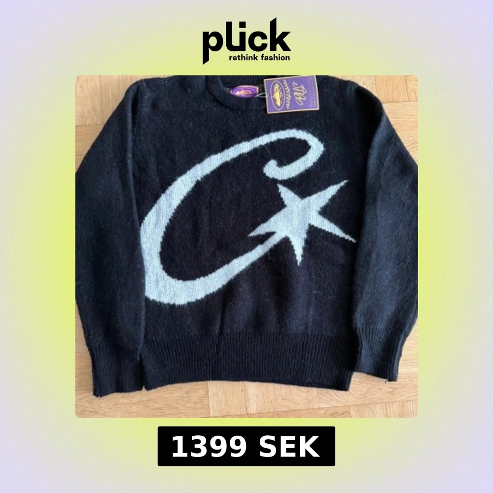 Svart stickad tröja från Corteiz med stor vit C och stjärna på framsidan. Rund hals, ribbade muddar och långärmad. Broderad logga på ärmen. Perfekt för dig som gillar coola detaljer och mjuka material.