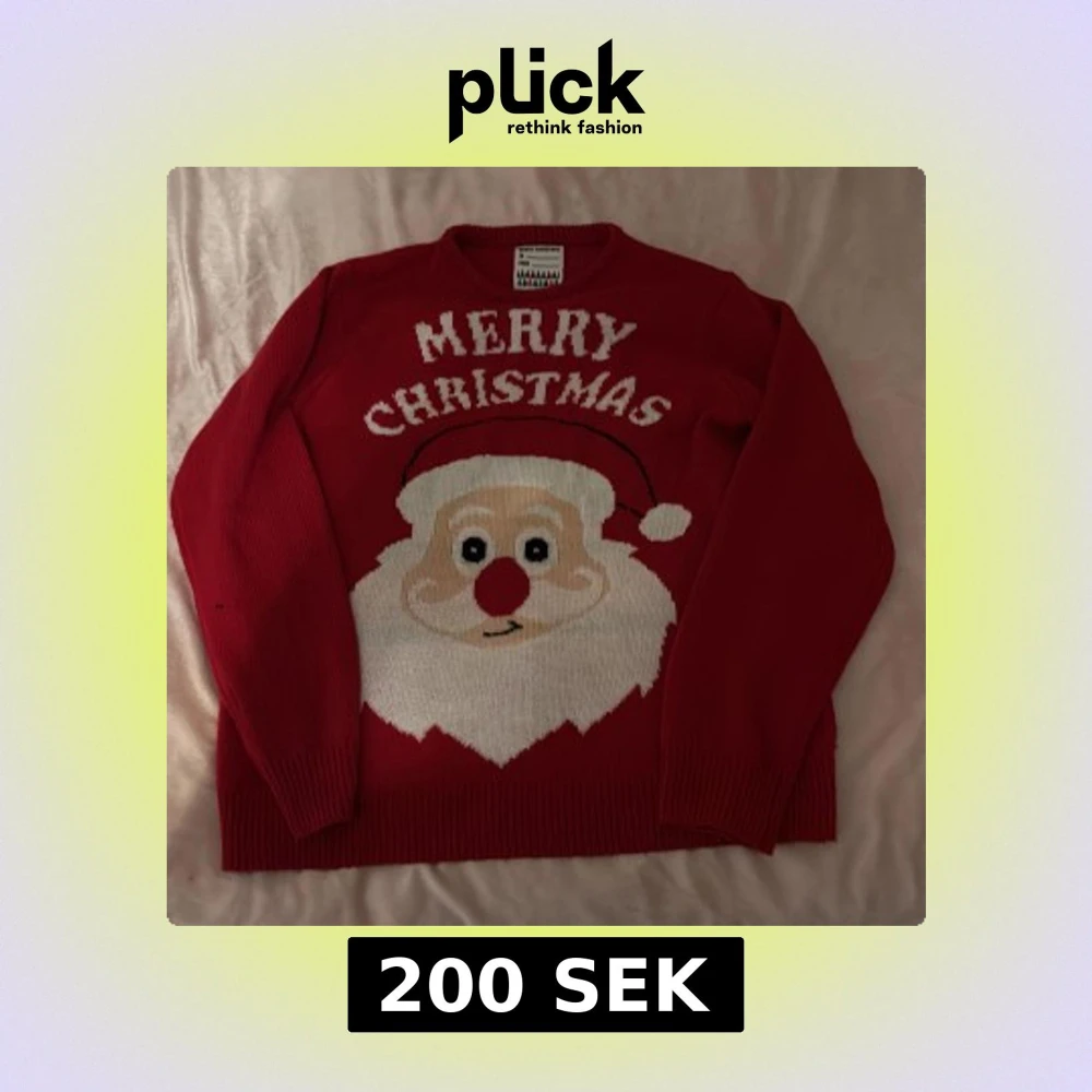 Säljer en röd jultröja med ett stort tomtemotiv och texten 'Merry Christmas' på framsidan. Perfekt för julfirandet! Tröjan har långa ärmar och är gjord i ett mjukt material. Aldrig använd 10/10 skick