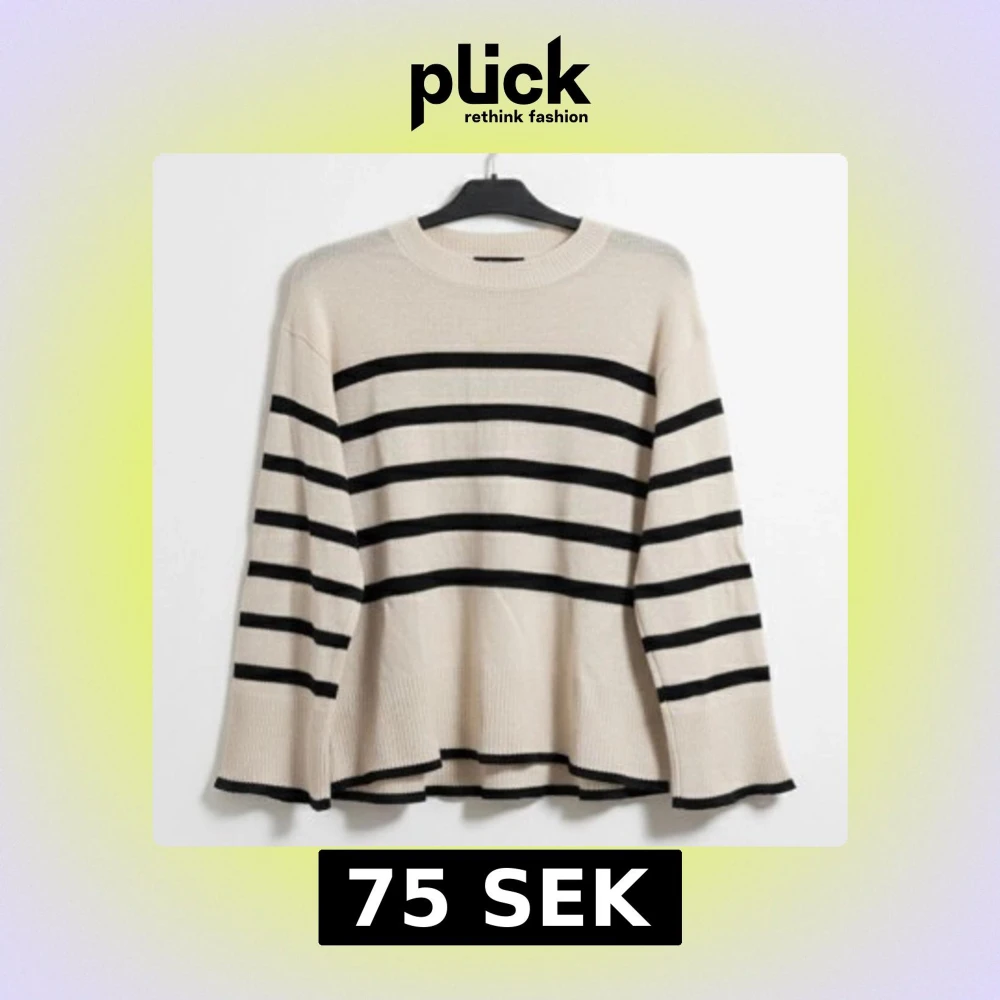 Beige stickad tröja från H&M Divided med svarta horisontella ränder. Tröjan har rund halsringning, långa ärmar. Jätte mysig tröja. Perfekt för hösten och vintern