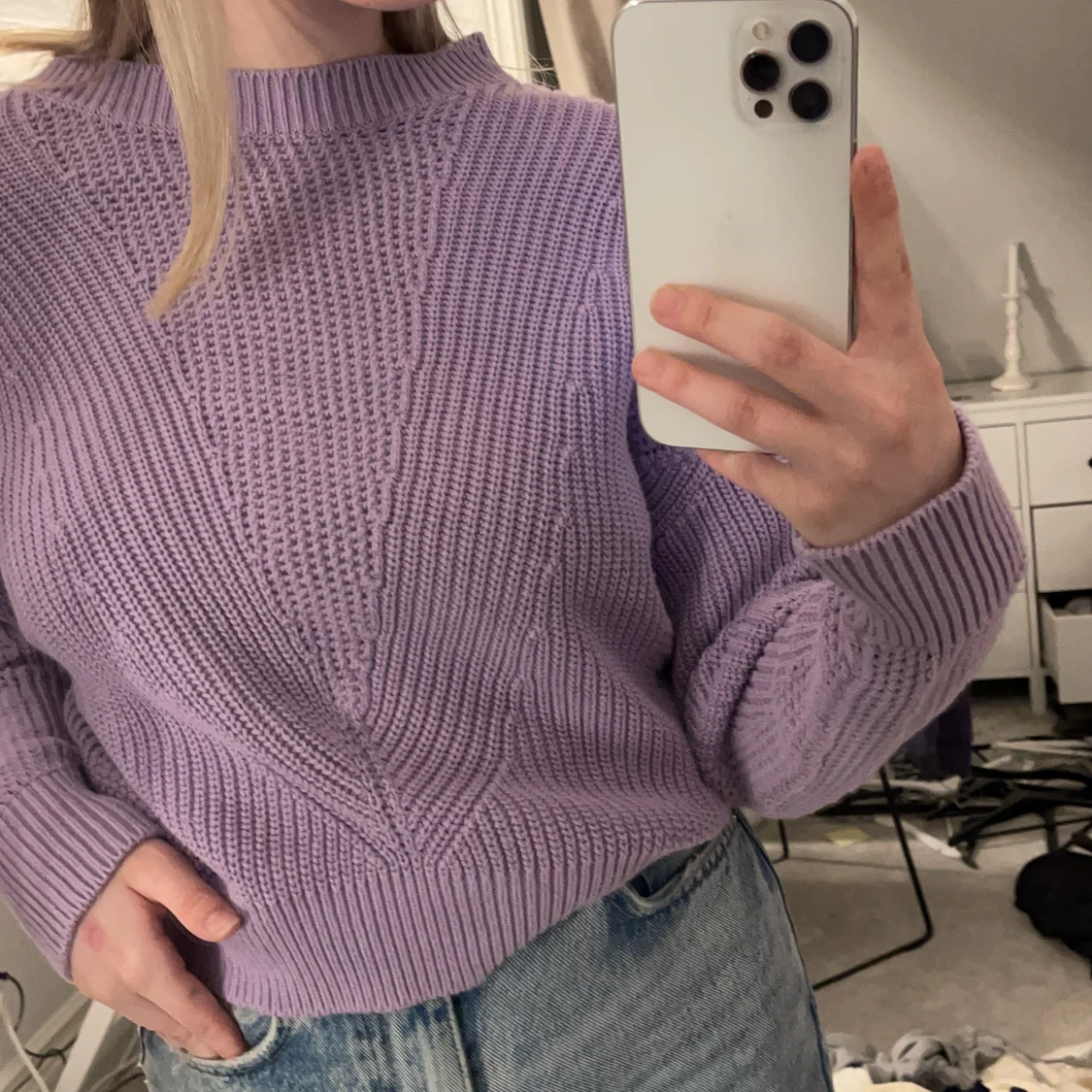 stockad lilla tröja