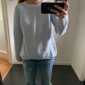 En ljusblå stickad tröja som knappt är använd och är i bra skick. Frakt ingår inte i priset.