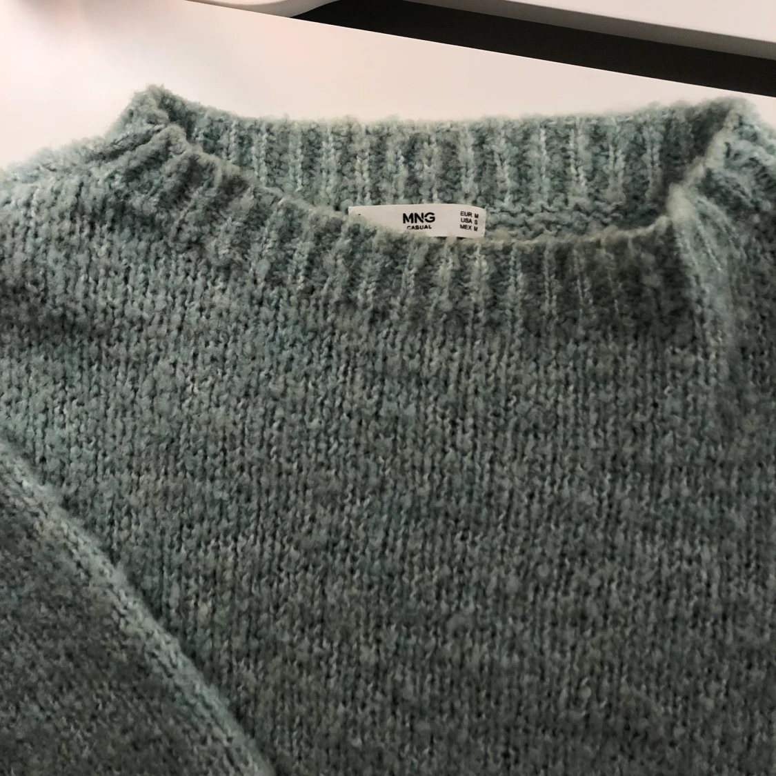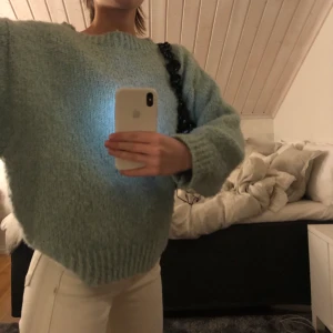 Superfin stickad tröja i en turkos/ grön färg i storlek M Den är inte stickig utan mjuk och tjock, använd fåtal gånger. Köpare står får frakt!