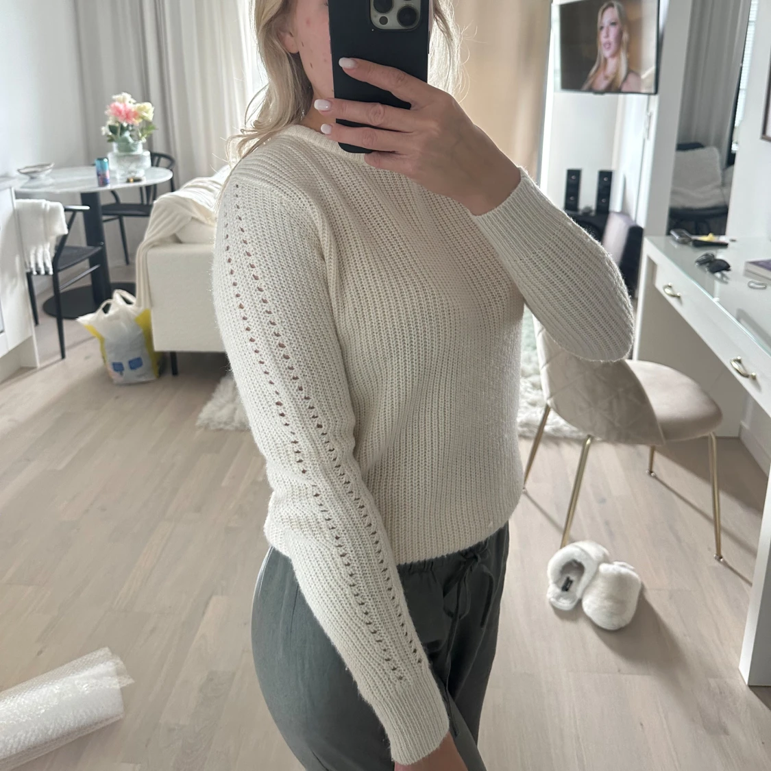 Stickad tröja från Mango i storlek s. Sitter som en XS skulle jag säga🤍