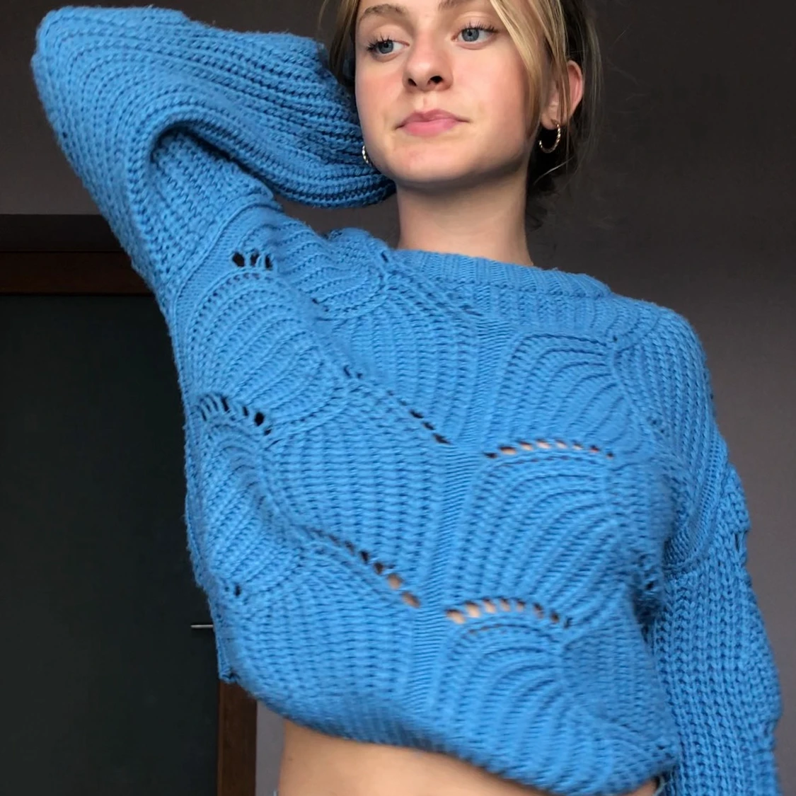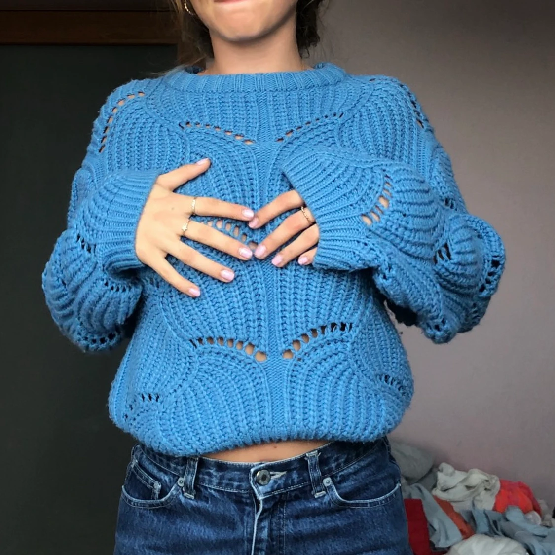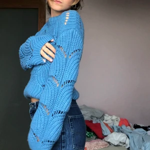 Superfin blå stickad tröja, strl S. Jättesnygg klarblå färg!!!! Inga skador eller så men den är använd en del❤️