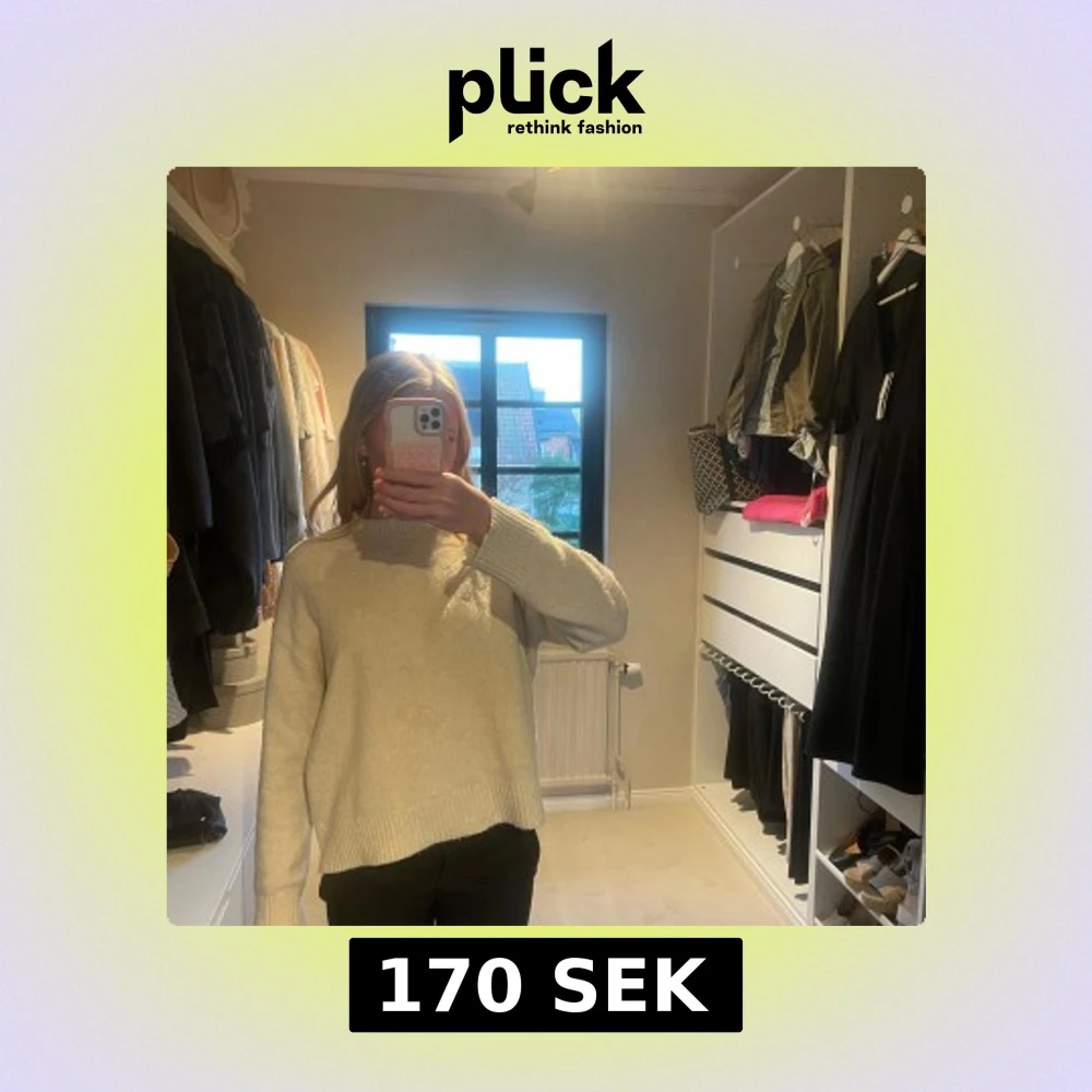 Mysig beige/vit stickad tröja från Mango med rund halsringning och långa ärmar. Storlek xs, den är precis som den rosa jag också säljer, bara köpta i olika länder, därav olika storlekar. Den är i bra skick och den är väldigt skön!
