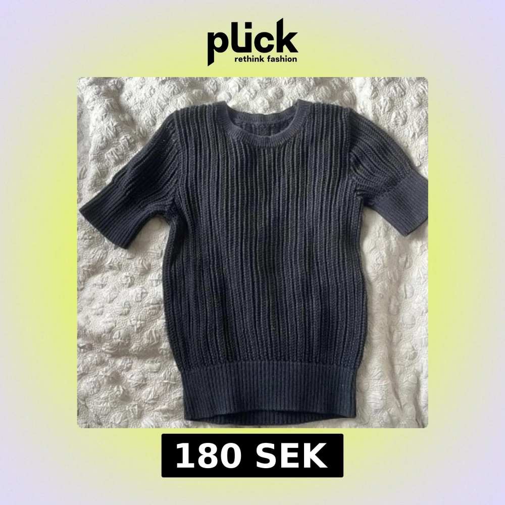 Säljer en svart ribbstickad tröja med korta ärmar och rund hals. Tröjan har en chunky, stickad struktur och breda muddar vid ärmslut och nederkant. Perfekt för lager-på-lager och funkar året runt. Den är från mango men lappen är av.