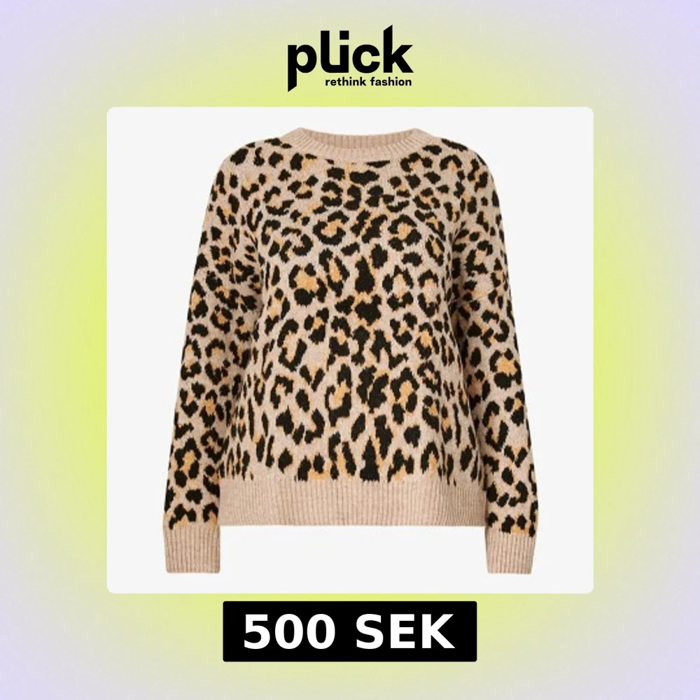 Snygg stickad tröja i beige med leopardmönster i svart och brunt. Tröjan har rund halsringning, ribbade muddar och lång ärm. Perfekt för dig som vill sticka ut med ett djurmönster och ändå hålla det bekvämt och stilrent. Priset kan diskuteras !!