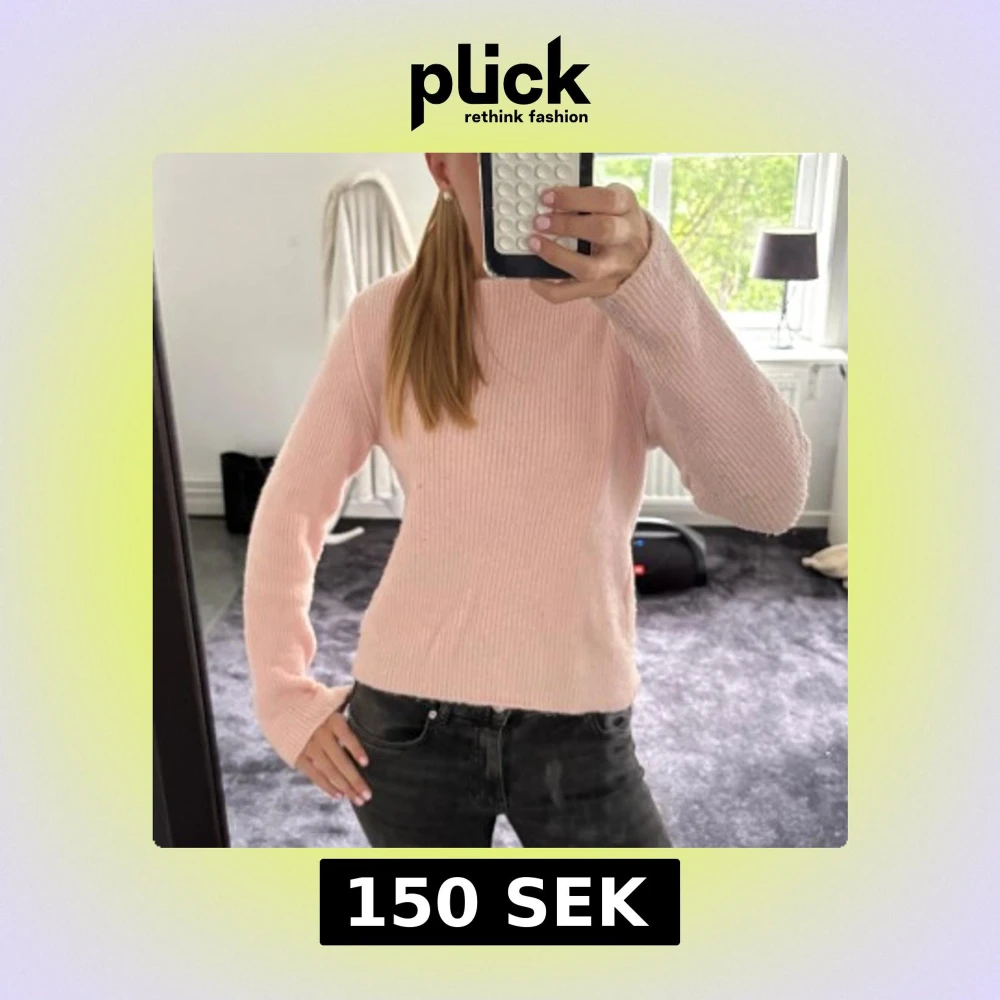 Säljer en supermysig ljusrosa stickad tröja med ribbad struktur. Man kan ha den som offschoulder men fungerar lika bra att ha normalt.