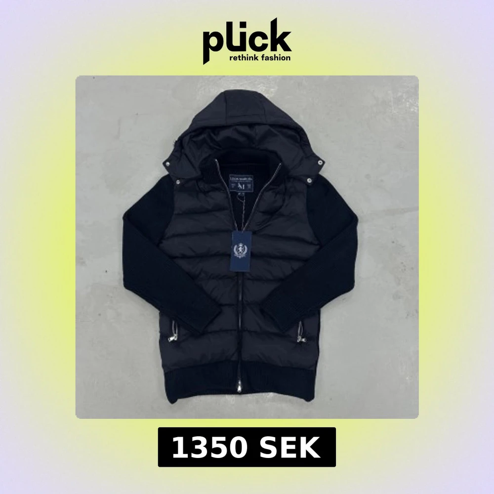 Svart pufferjacka från Leon Marcel med stickade ärmar och huva. Jackan har dragkedja framtill och två sidofickor med dragkedja. Snygg, modern look med diskreta detaljer.