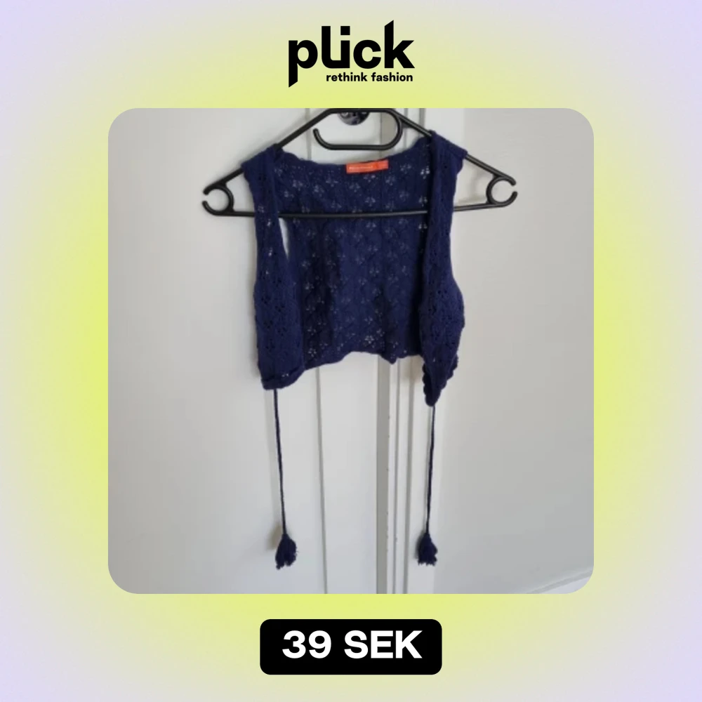 Helt ny oanvänd marinblå stickad kofta/bolero. 100% bomull. Passar personer ca 155 cm, se bild 5. Måttband på bilderna finns för referens. För mer info, kontakta✨️