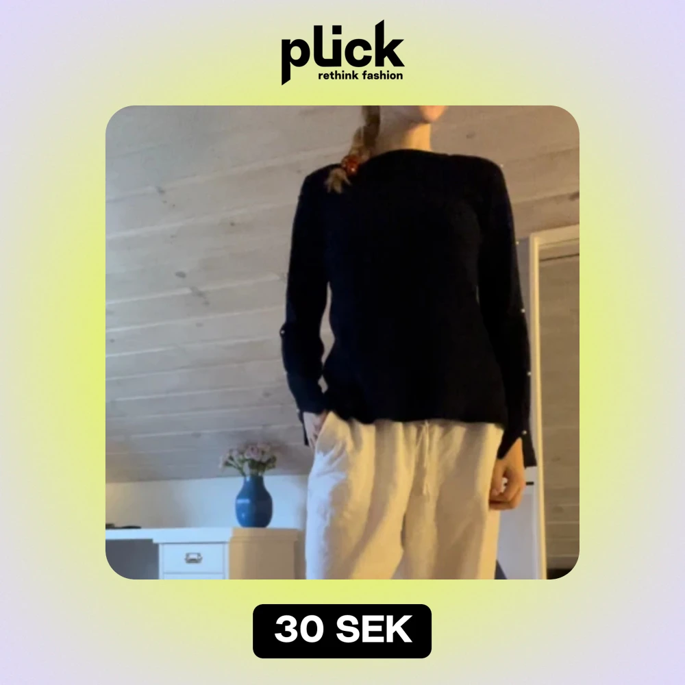 Fin tunn långärmad mörk marinblå tröja med pärlor längst med ärmarna i nyskick✨🫐