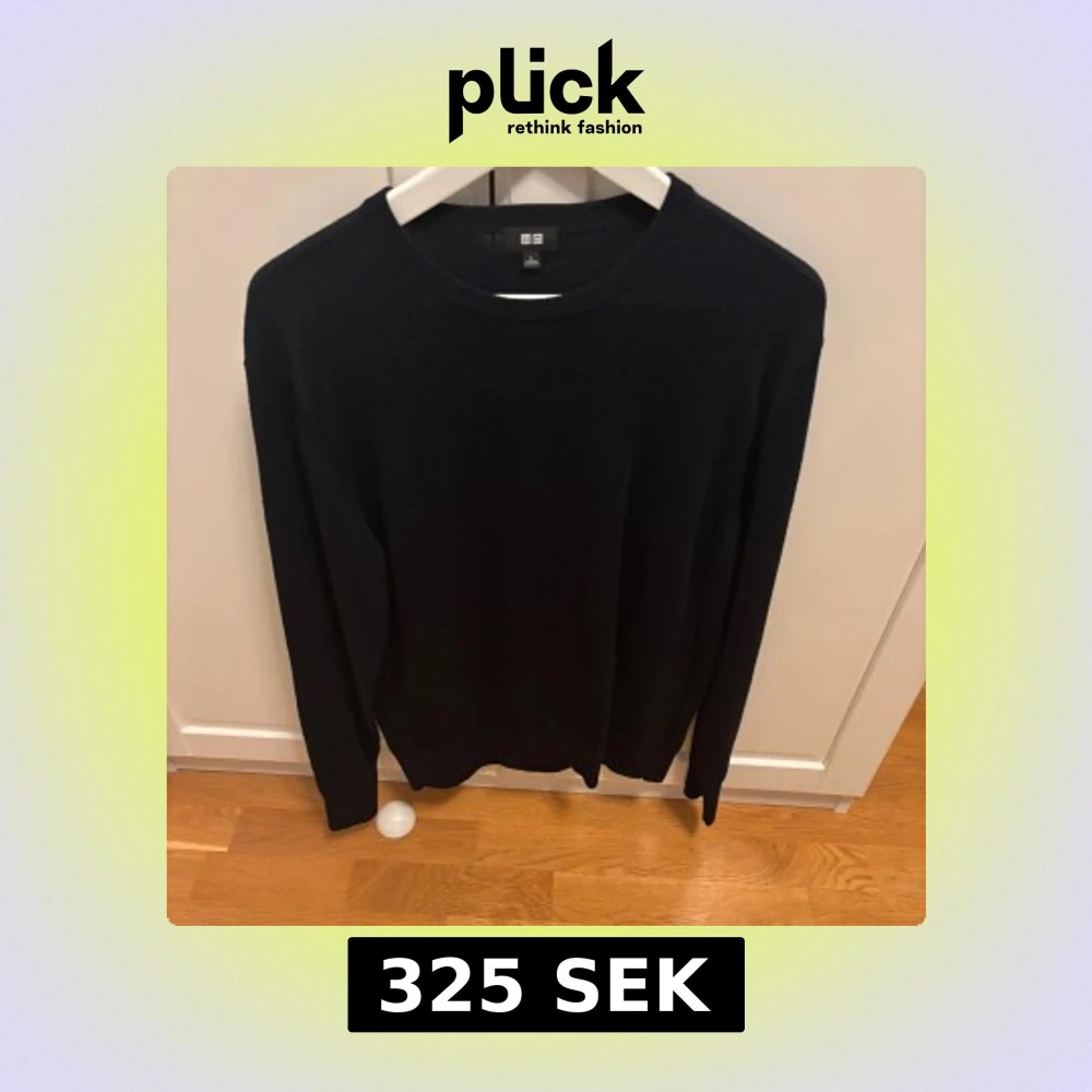 Svart stickad tröja från Uniqlo i storlek L men funkar mer för M.Tillverkad i 100% ull, pris är förhandlingsbart och de bara att skriva vid frågor eller funderingar.