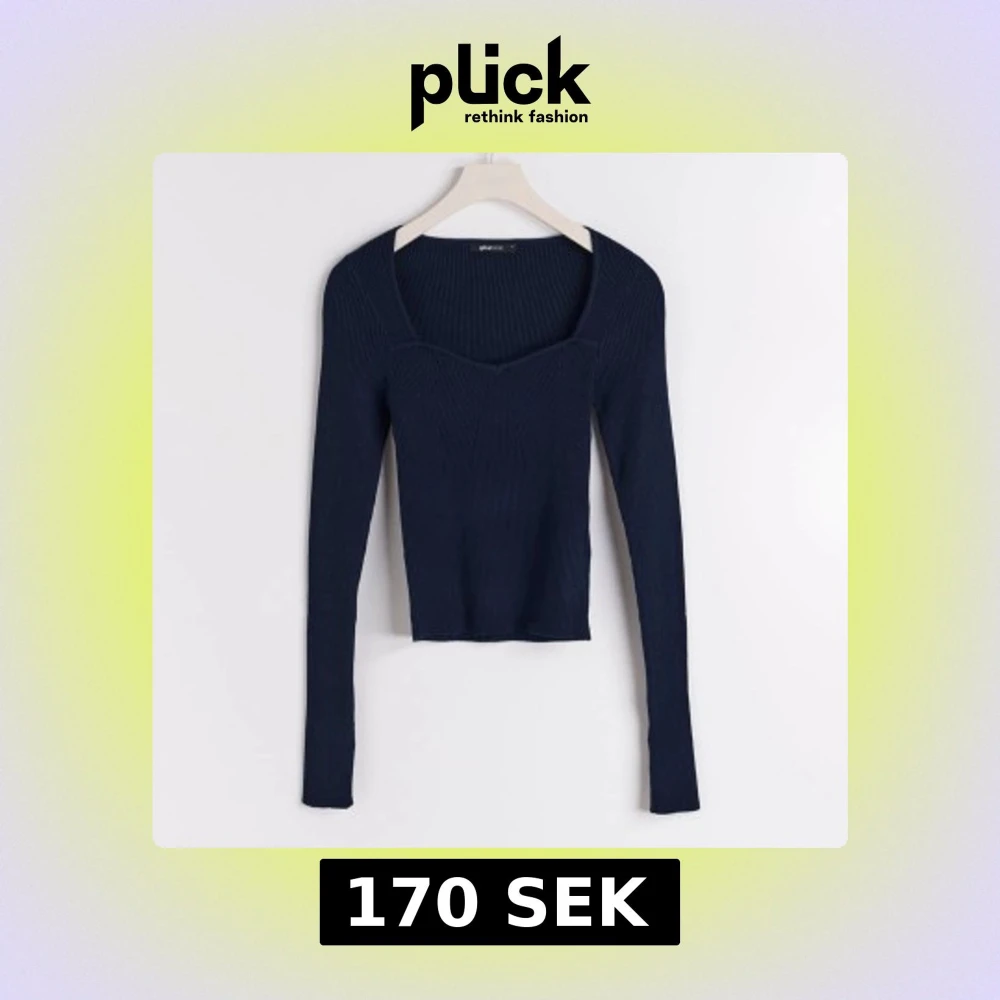 Marinblå ribbstickad topp från Gina Tricot. Inga defekter. Slutsåld på hemsidan, nypris 300kr. Kolla gärna in mina andra annonser och lägg gärna bud på bundle så kommer vi överens om något🫶 Det finns just nu möjlighet till gratis frakt!!