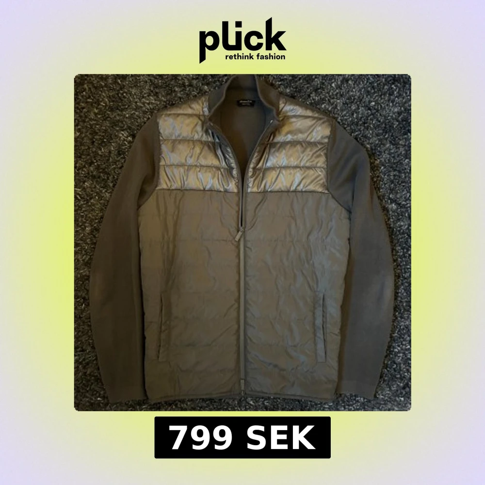 Snygg grå pufferjacka från Massimo Dutti med quiltade paneler och stickade ärmar. Jackan har hel dragkedja framtill, ståkrage och två sidofickor. Materialmix med glansig syntet på kroppen och mjuka stickade partier på ärmarna. Perfekt för dig som gillar stilren och modern look.