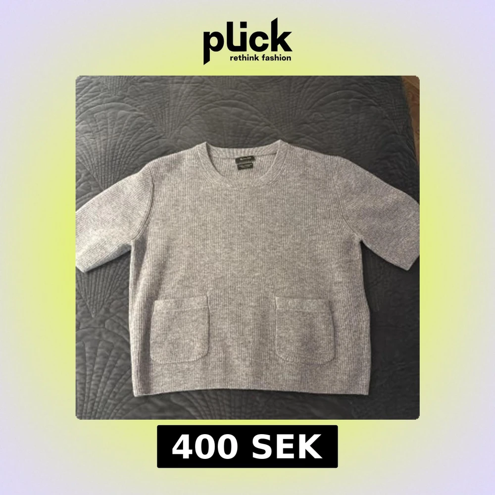 Säljer en grå stickad tröja från Massimo Dutti med ribbad struktur och två praktiska fickor framtill. Tröjan har korta ärmar och rund hals, perfekt för lager-på-lager under kyliga dagar. Enkel och stilren design som passar till allt. Ull blandat med kashmir❤️❤️❤️